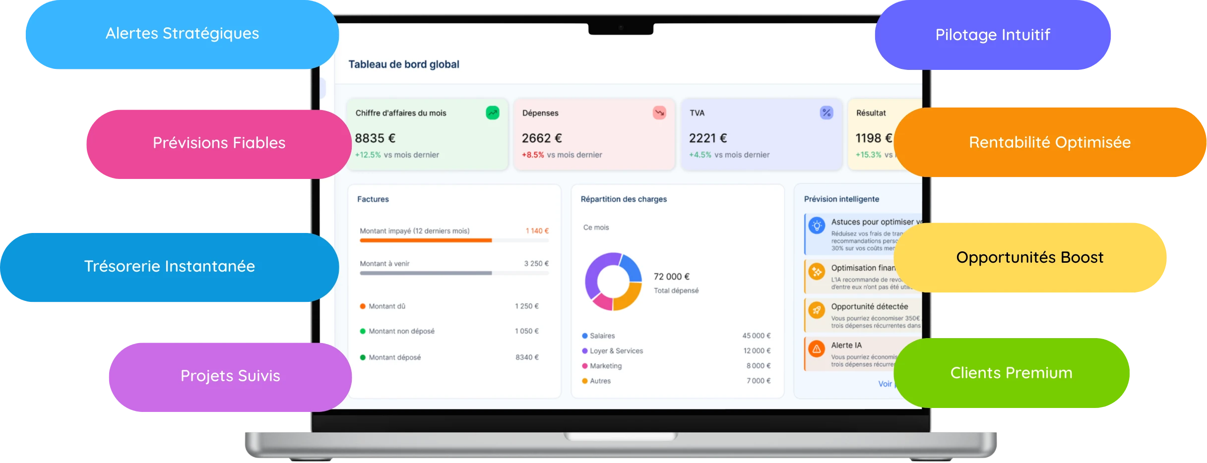 Pilotez votre activité, votre trésorerie et vos projets depuis une seule plateforme, simple et performante.