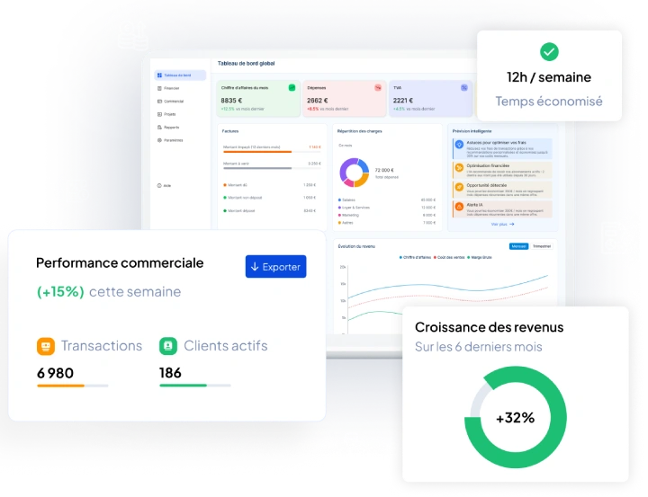 Centralisez vos données financières en temps réel et prenez les meilleures décisions grâce à une interface intuitive conçue pour les dirigeants.